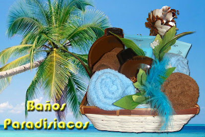 Baños paradisíacos ha sido diseñada especialmente para Rocío, está formada por productos de baño en los tonos celeste y marrón chocolate al igual que su cuarto de aseo, aún sin colocar los azulejos, para su futura casa.